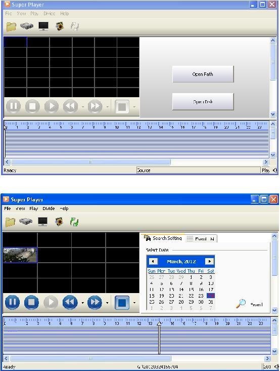 b. После установки плеера, запустите его и нажмите на кнопку «Открыть» (Open Path) и укажите расположение файла резервной копии. Затем, нажмите кнопку для начала воспроизведения. Дважды кликните на изображение и затем нажмите правой кнопкой мыши для включения аудио (поясняющие рисунки смотрите ниже). Если файлы резервного копирования были сохранены в формате AVI, то для их воспроизведения можно использовать стандартный проигрыватель видеофайлов (VLC, WMP и т.п.). При этом необходимо, чтобы на компьютере были установлены видеокодеки последней версии.
